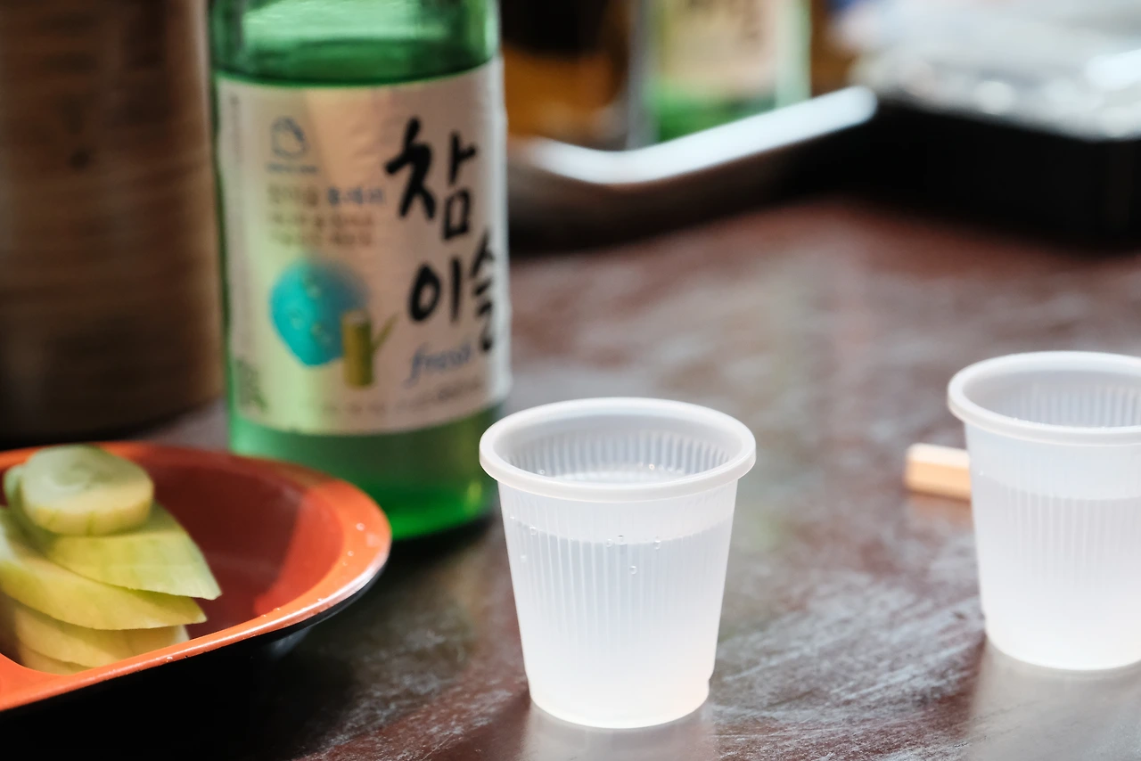 먼 시간이 지난 지금 나이를 먹은 뒤 이제는 내가 등을 보이고 푸른 소주를 마신다.