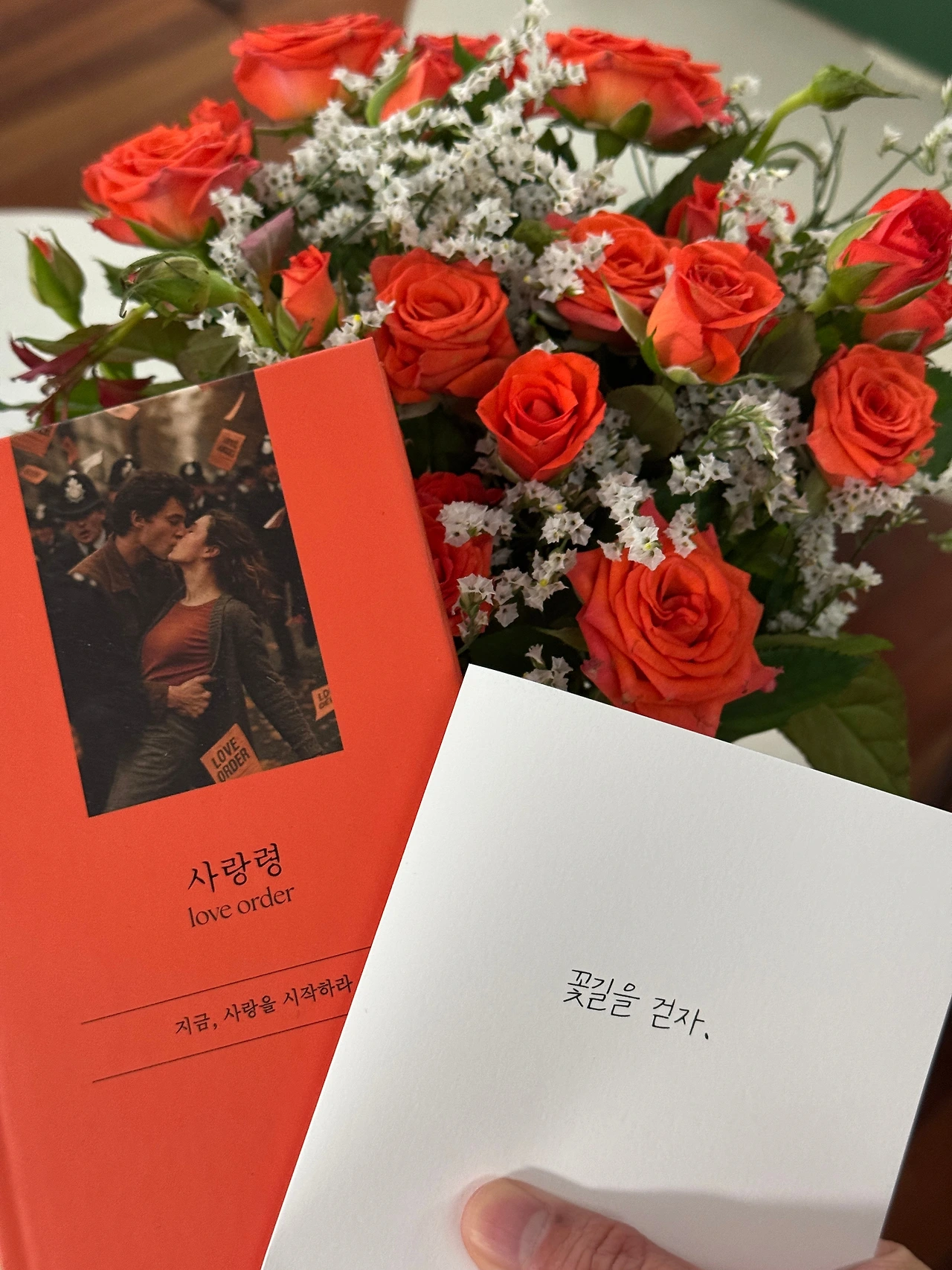 꽃다발 속에 내 책이 있으니 어떤 책 보다 아름답고 소장 가치가 높아 보였다. 거기에 콘셉트도 사랑이니 더할 나위 없는 선물이었다.