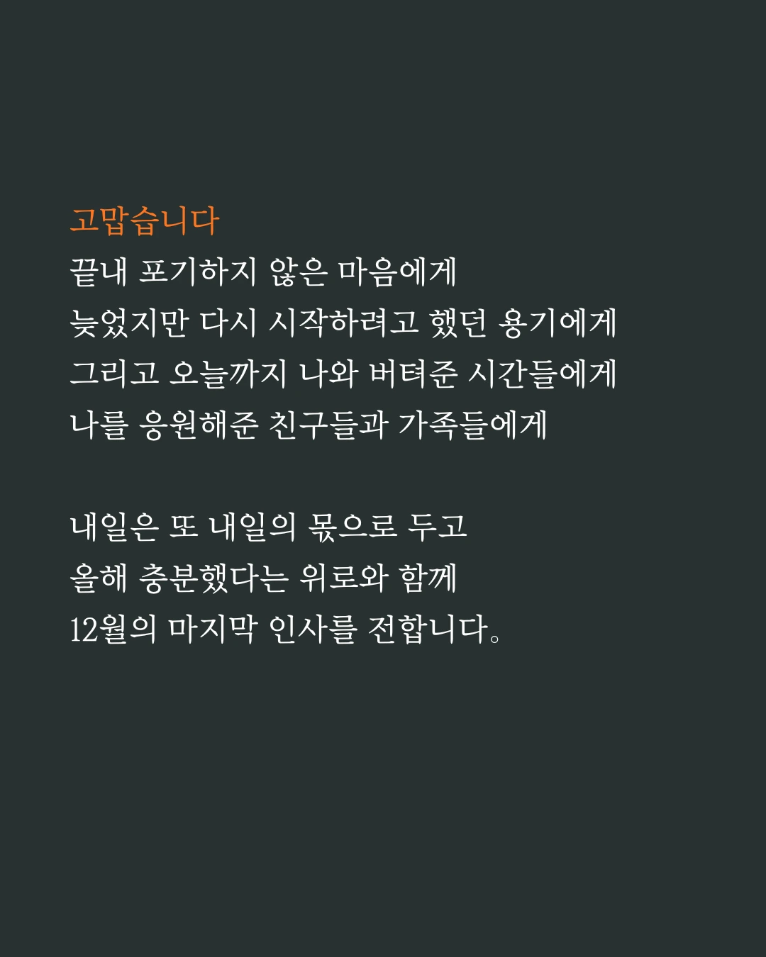2025의 마지막 날. 나와 당신에게 그리고 모두에게 감사의 인사를 전하며 마음을 전합니다.
