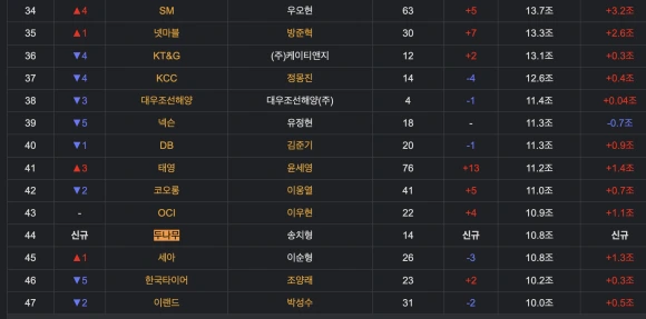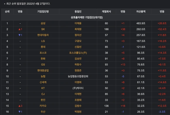 2022년도 4월 27일에 발표된 공정위 재계서열에 따르면. 두나무가 신규로 44위에 진입했습니다.
