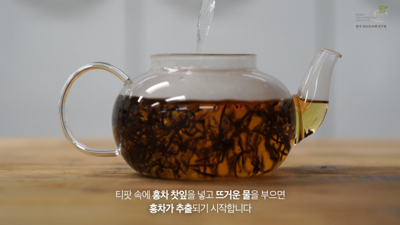 홍차는 녹차, 백차, 우롱차와 달리 한 번에 우려 마신다. 그래서 차를 우리는 다관, 티팟 tea pot이 크다. 혼자 마실 때는 300~500cc, 여럿이 마실 때는 800cc~1000cc 정도가 적당하다. 녹차라면 여러 번 사용할 물을 홍차를 우릴 때는 한 번에 사용한다고 이해하면 좋다. 혼자 홍차를 마시고 싶을 때 나는 커피 드립 주전자, Kalita 유리 주전자 500cc를 사용한다. 홍차는 물이 뜨거운 게 좋다. 그러나 너무 오래 팔팔 끓이면 물속의 산소가 다 빠져나가니, 끓기 시작하면 바로 전원을 끄는 게 좋다. Kalita 드립 주전자에 홍차를 적당량(차스푼으로 두 스푼 정도) 넣고, 뜨거운 물을 붓는다. 이때 조용히 붓기 보다 찻잎이 한바탕 소용돌이를 일으키도록 시원하게 붓는다. 찻 잎이 여기저기 떠다니고 움직여야 차 맛이 좋다고 한다. 3분 정도 우린 후 짙은 붉은빛이 돌면 마신다. 홍차는 계속 따뜻한 상태를 유지하며 마시는 게 좋다. 그래서 워머를 사용한다. 충분히 우러난 찻물을 찻잎과 함께 계속 두면 떫어질 수 있으므로 다른 티팟에 옮겨 워머에 올려놓고 천천히 마신다.