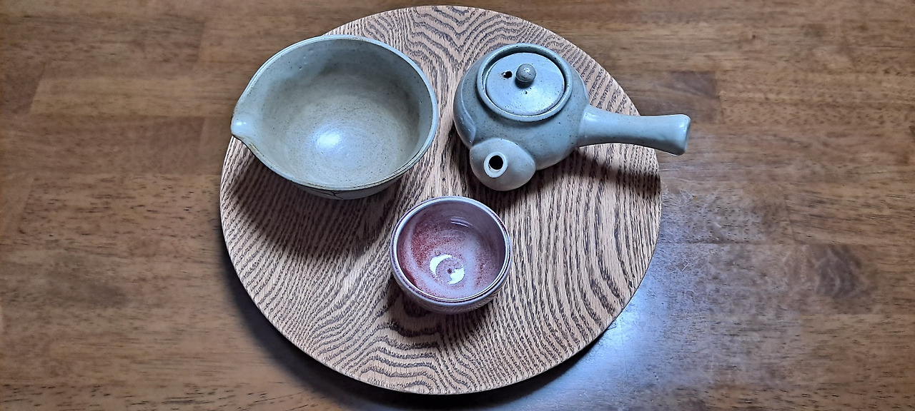 다구의 기본 구성으로 다관, 숙우, 찻잔 그리고 다반(다기세트를 올려놓는 나무 쟁반)