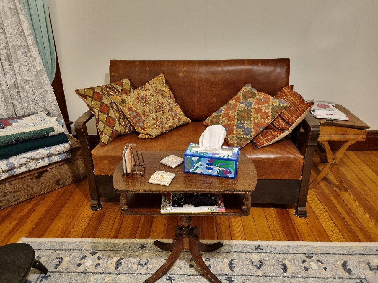 한 할머니가 수십 년을 살아오신 아주 평범한 2층집이었는데, 삐거덕거리는 계단을 올라 숙소에 들어가는 순간 뭔가 특별한 감정이 확 밀려왔어. 요즘 말로 하면 '찐 빈티지 감성'이랄까? 방 안에는 색 바랜 나무 서랍장, 오래된 가죽 소파, 철제 침대, 손때 묻은 책들, 그리고 직접 만드신 듯한 커튼이랑 식탁보, 작은 액자 장식들까지… 모든 게 오랜 시간 자연스럽게 그 공간에 스며든 듯한 분위기였어.