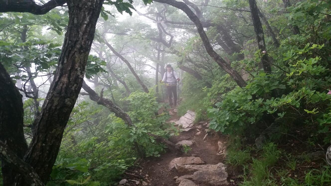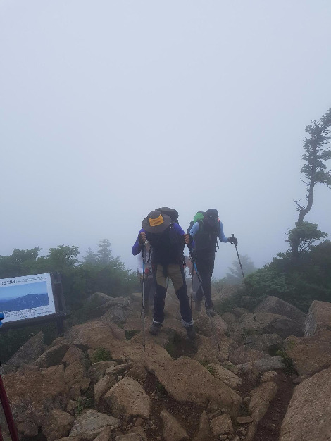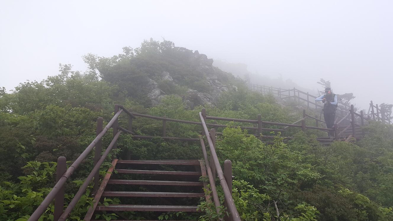 약 5시간 30분 정도 소요된 이 길은 꽤 경사가 있긴 했지만 그래도 상대적으로 무난한 편이었다. 하지만 등산로 주변은 자욱한 안개로 거리를 가늠하기가 어려웠다.