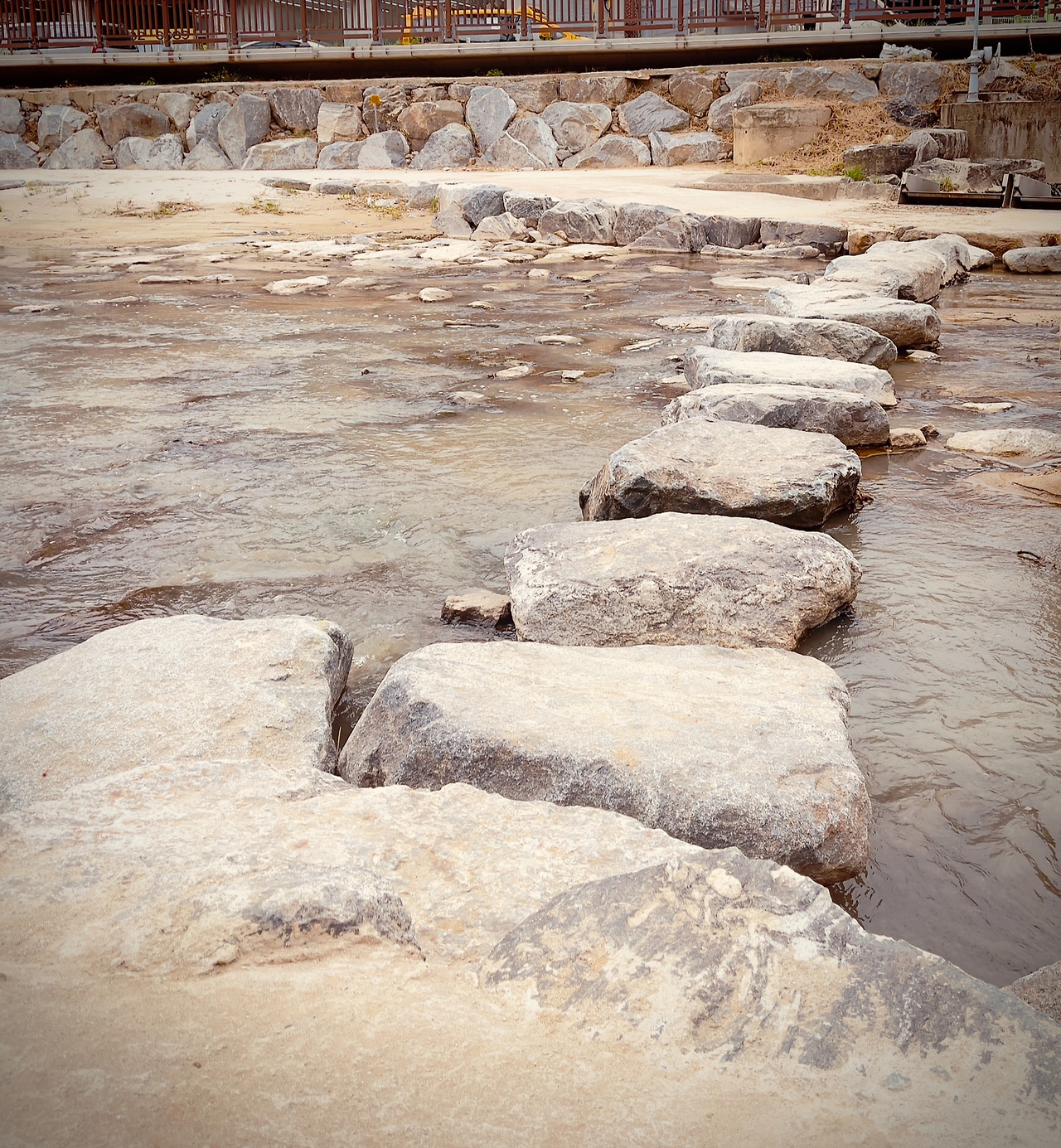 큰 돌로 개천을 건너도록 징검다리도 만들어 놓았습니다