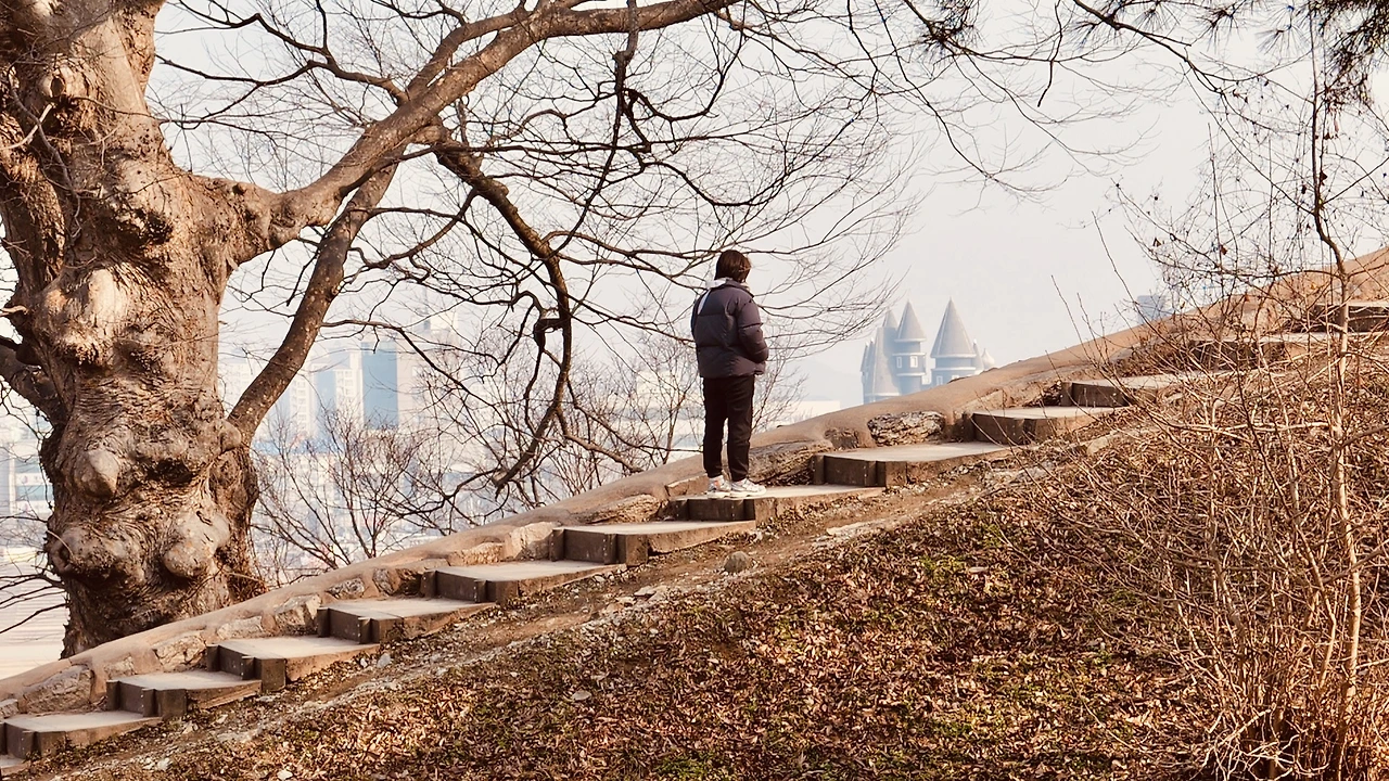 흥얼거리며 멀리 산을 바라보던