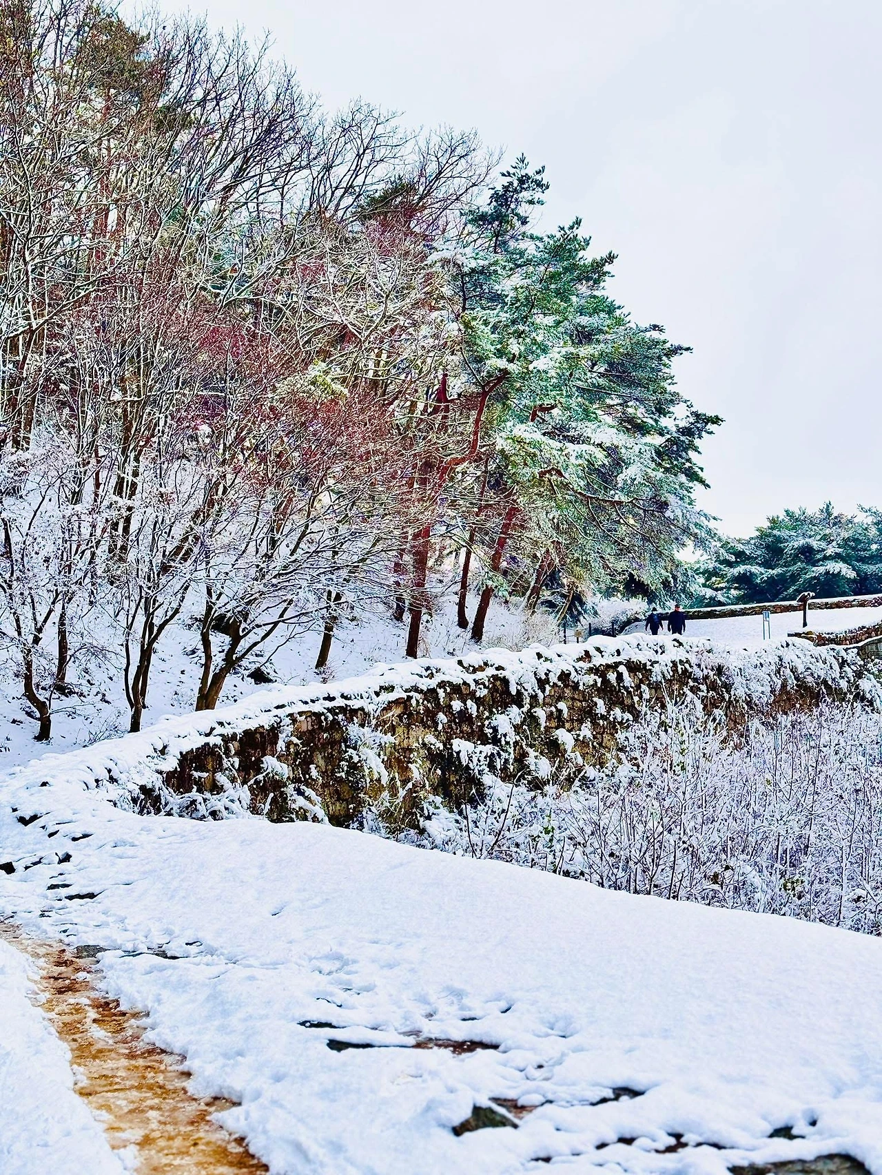 누가 강제로 밀지 않은 겨울 산길을 걸었다