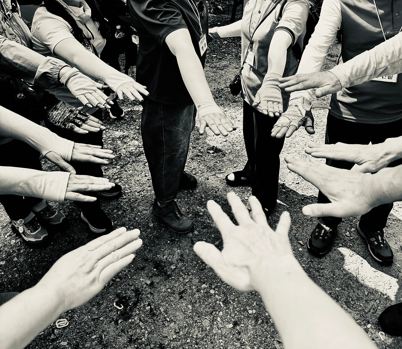 짧은 구호를 외치고 행복한 미소들을 지었다