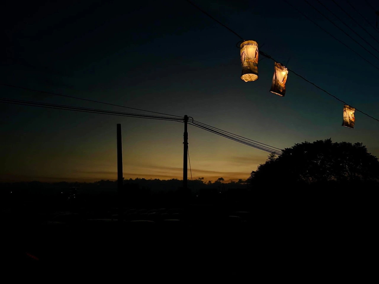 높은 하늘에 줄을 매어 청사초롱 등을 달고
