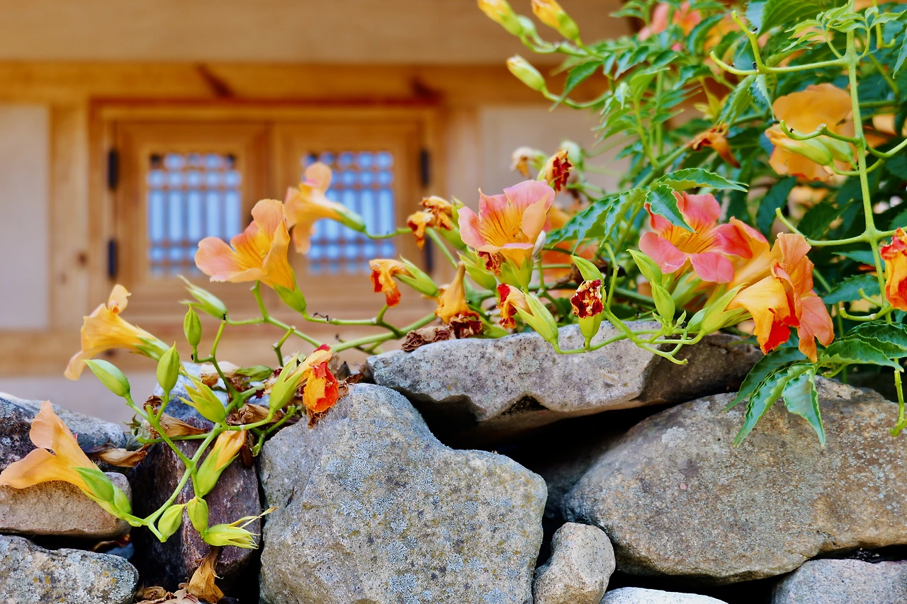 돌담장 위로 옆으로