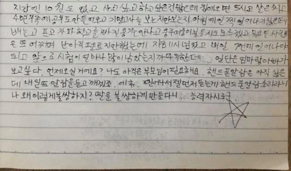 ‘엄마 아빠가 보고싶다. 아무 필요한거 없어. 언제 돌아와?’