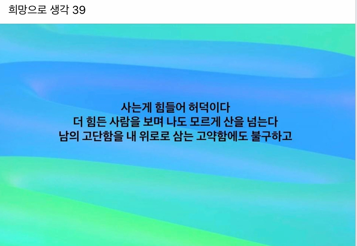 힘들 때 어깨 부축하고 서로 도움되는 길을 가야 모두가 행복해진다.