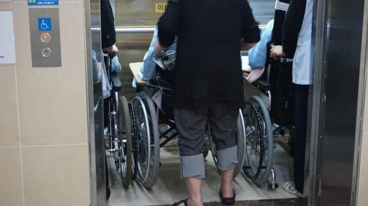 시간이 늦은 환자와 간병인들이 급해지면 서로 먼저 타려고 전쟁 북새통이 됩니다. 눈치보고 밀어넣기 새치기 끼어들기...