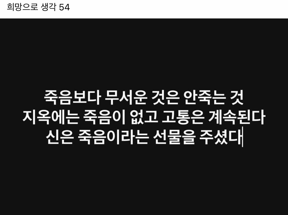 이 땅에서도 죽지 않으면 지옥이 별 다르지 않을거다.