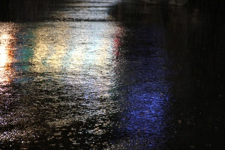 가로등 아래로 불빛은 반사되어 반짝이고