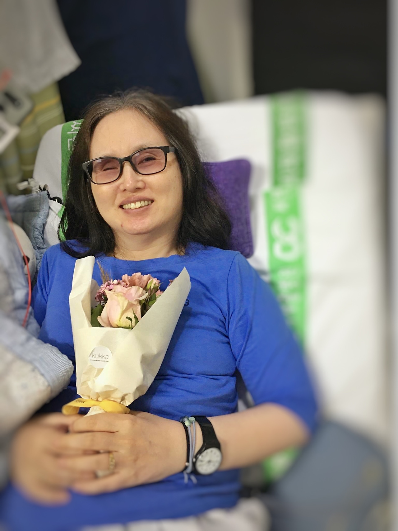 * 딸이 보내준 꽃을 들고 잠시 웃는 아내