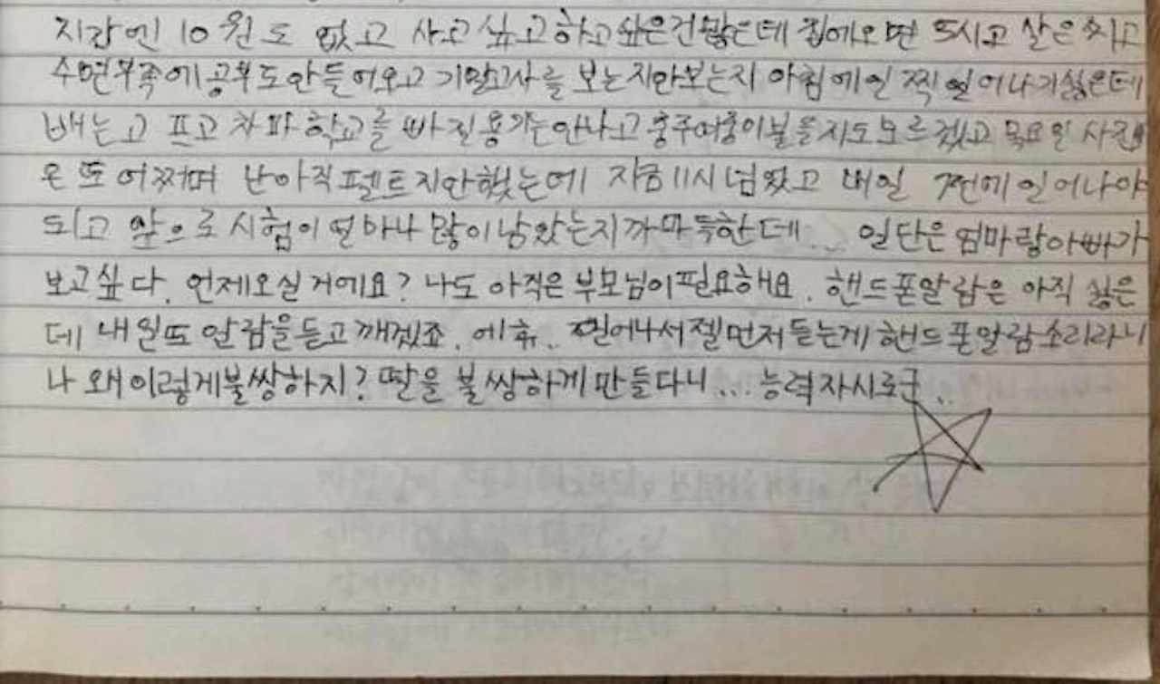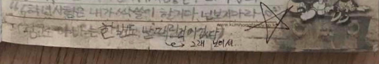 그 심정이 일기장에 적혀있었고 선생님은 옆에 위로하는 답을 달았다.