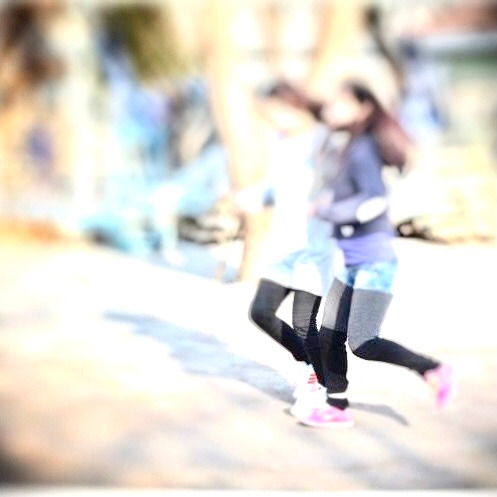 <2인3각 달리기를 하는 중>
