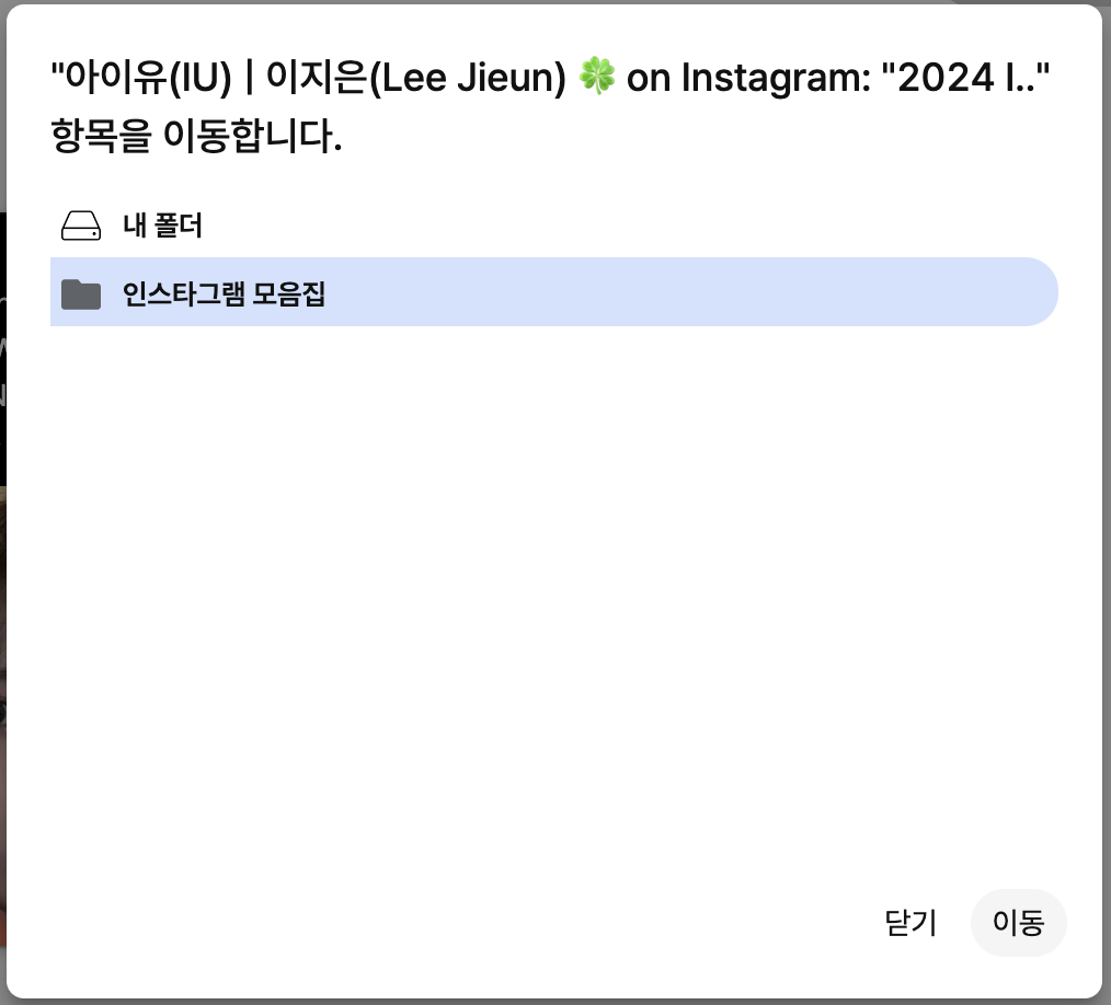 자 그러면 이렇게 폴더를 생성하고 나서 아이유님의 인스타를 이동해 보도록 하겠습니다.