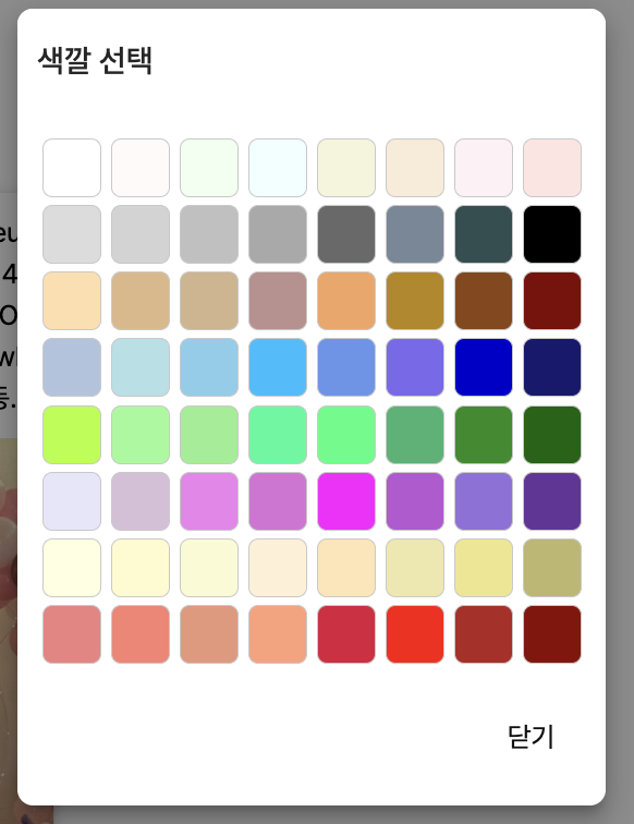 해당 아이콘을 클릭을 하면 아래와 같이 팔레트 화면이 보입니다.