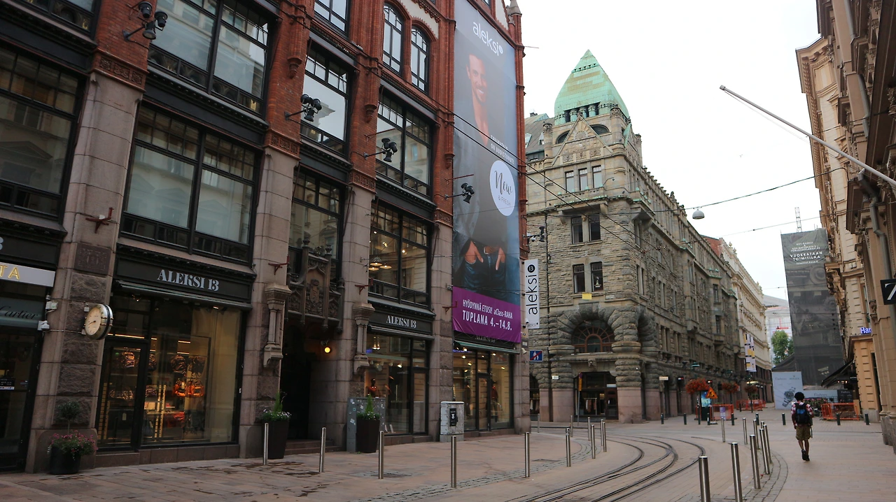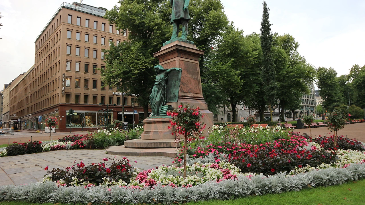 시내 중심의 공원, 광장, 스토크만 백화점 근처 상점가.