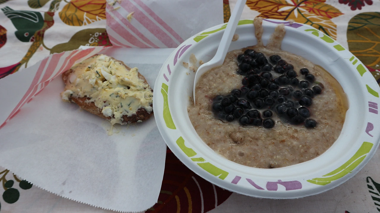 현지 사람들이 많이 먹는 오트밀죽에 꿀과 베리를 얹은 음식과 작은 바게뜨빵에 버터와 계란을 얹은 것. 두개 합쳐서 7유로. 이야말로 내가 원하는 완벽한 현지식 호호