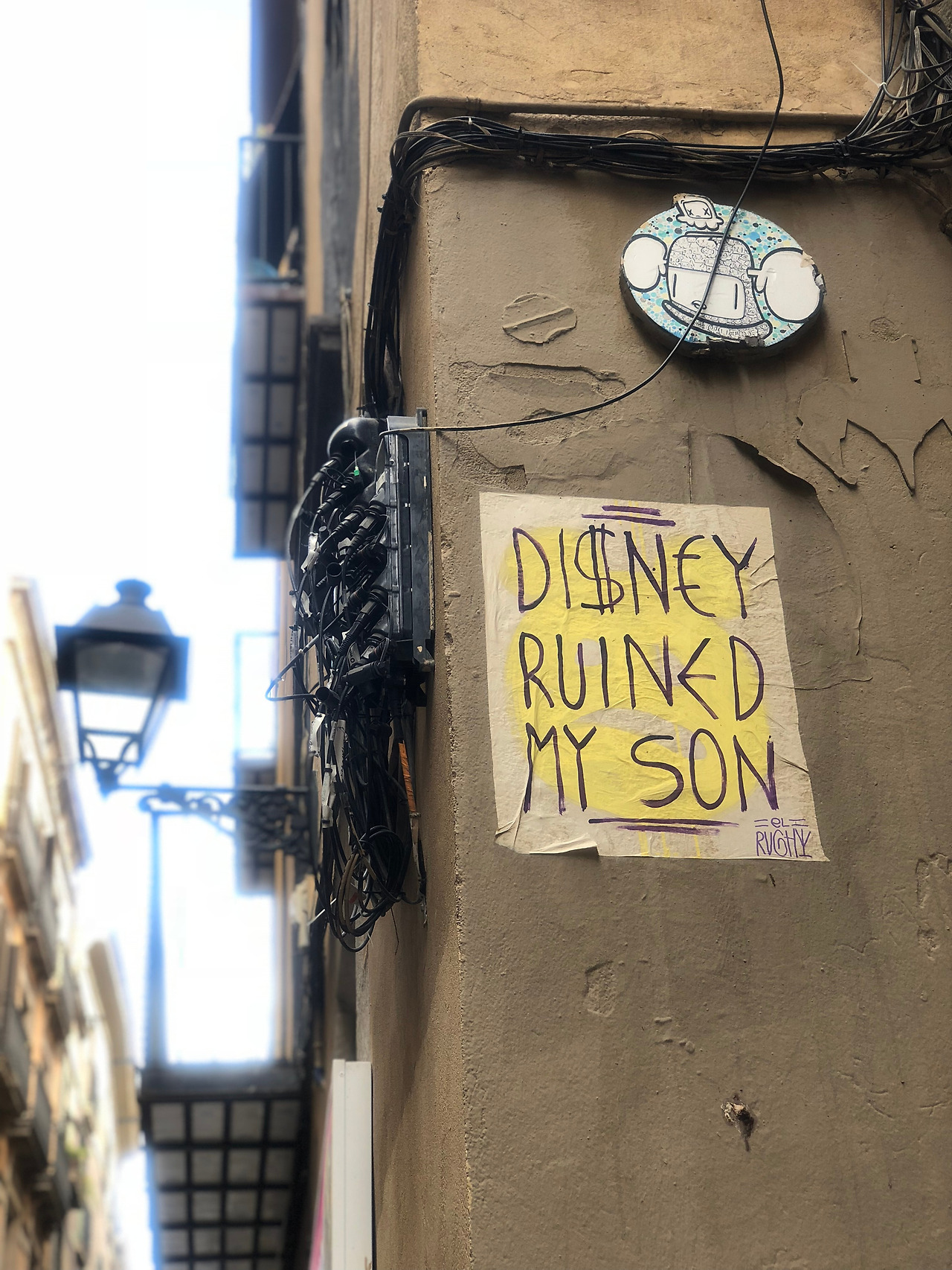 람블라스거리 한쪽에 ‘Di$ney ruined my son’ 이라는 글귀가 너무 재밌어서 사진을 찍었다. 디즈니도 가만보면 미국 자본주의, 우월주의의 표상이었을수도 있겠다 싶었다. 아니면 저 ‘$’의 의미가 단순히 아이들에게 들어가는 돈이었을까? 싶기도하다.