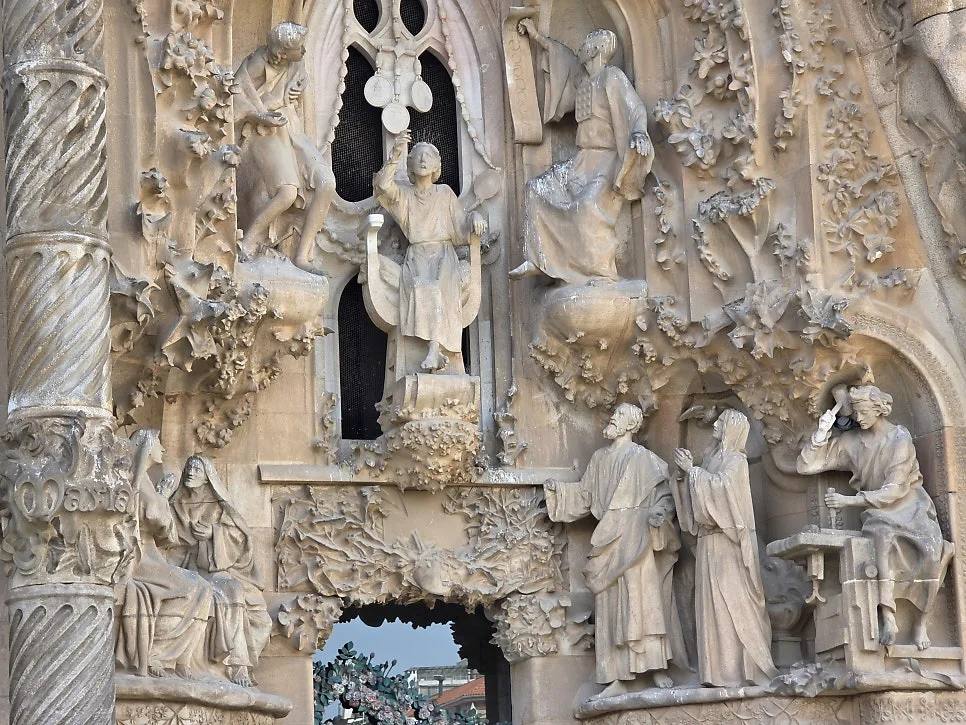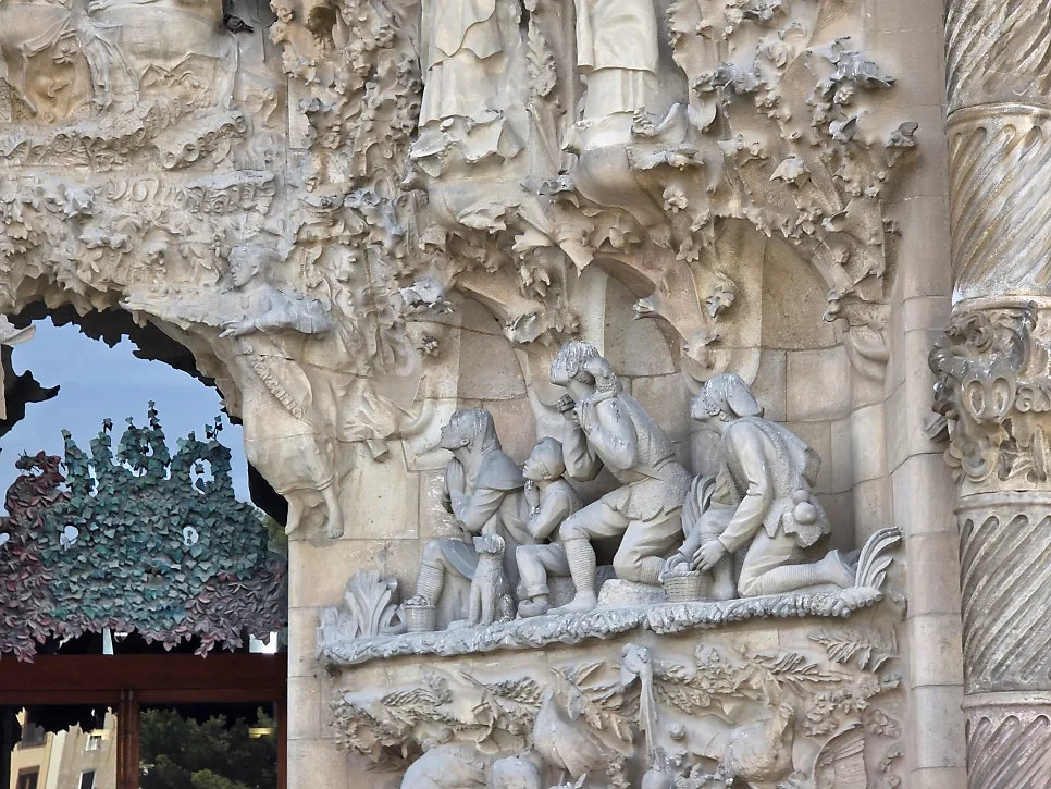 동쪽은 탄생 파사드로 예수님의 탄생과 유년 시절을 묘사하며 가우디가 직접 작업에 참여한 유일한 파사드이다.