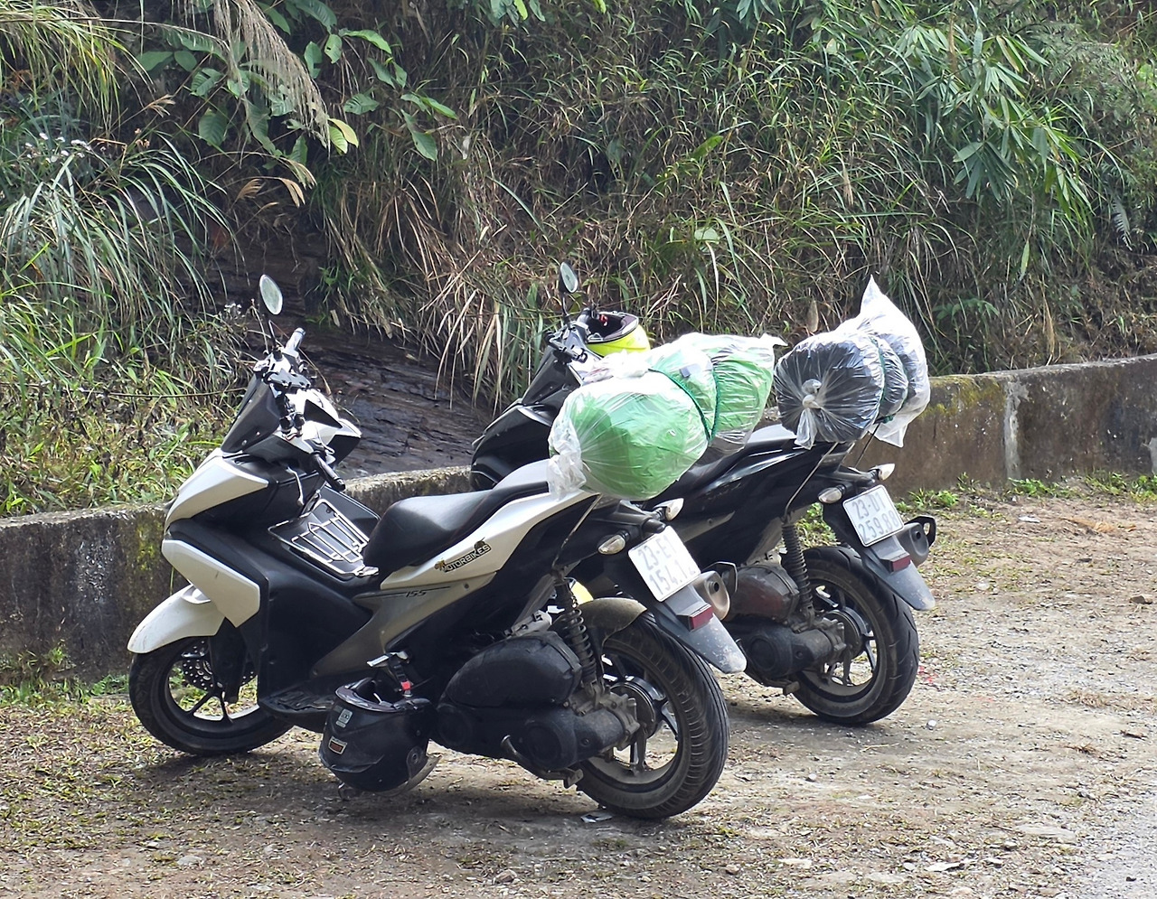 캐리어는 가져갈 수 있지만 하장숙소에 맡기고 최소한의 짐만 배낭에 담아 바이크 뒤에 싣고 이동해야 한다.