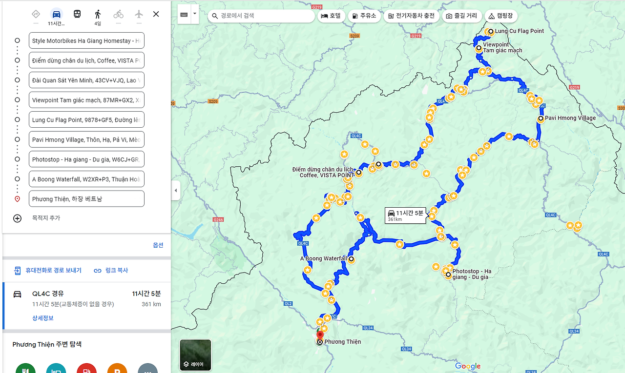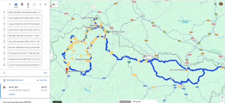 24년 9월은 하노이-하장(1박)-예민-동반(1박)-동반-바오락(1박)-까오방(2박)-하장(1박 )-하노이 아래 코스로 돌았음.( 마지막 날은 까오방에서 하장까지 우중에 260킬로 주행함)