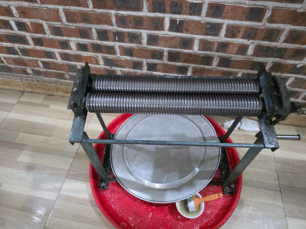 쌀물을 스팀기에 찐 후 발에 널어 반 건조시키고, 이걸 기계에 넣어 일정한 크기로 잘라 사용한다.