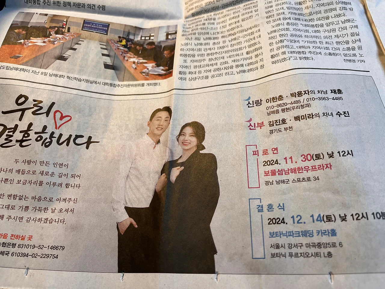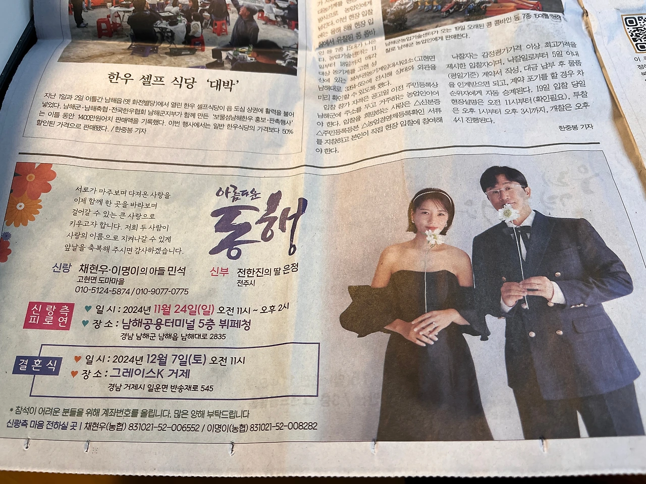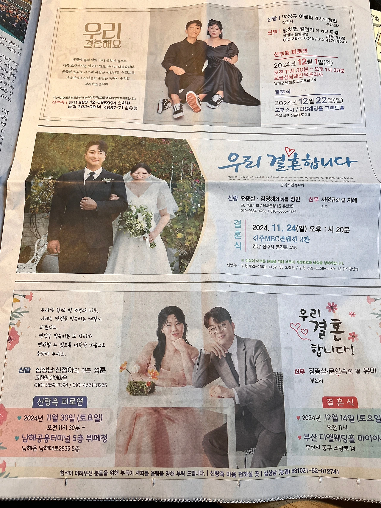 <남해시대> 최근호 지면에는 무려 8개 면에 결혼을 알리는 광고가 실렸다. 수상을 축하하는 친구들과 자녀의 광고도 있다.