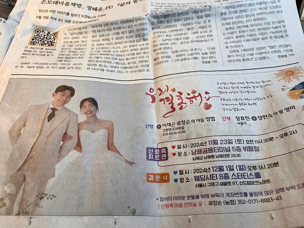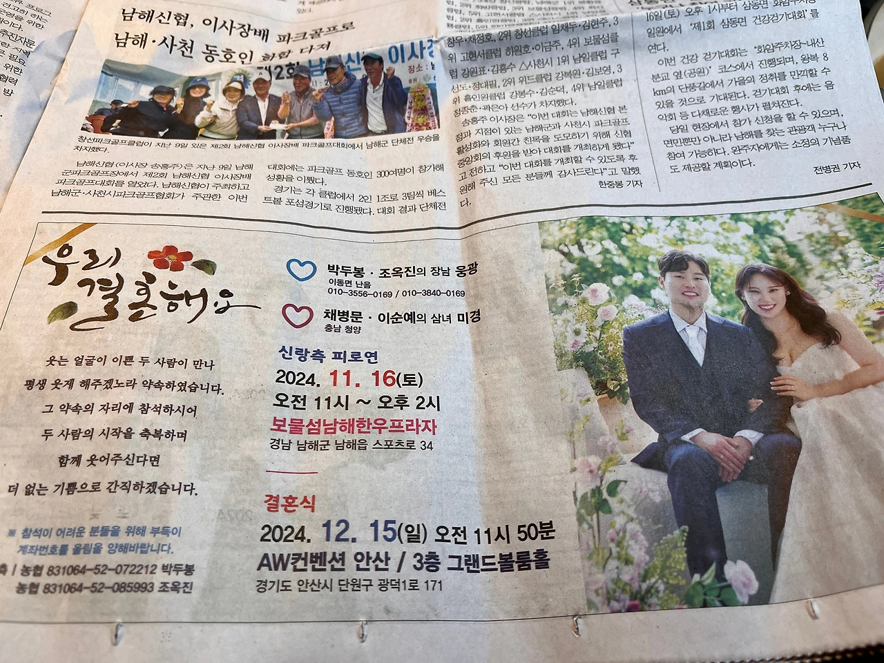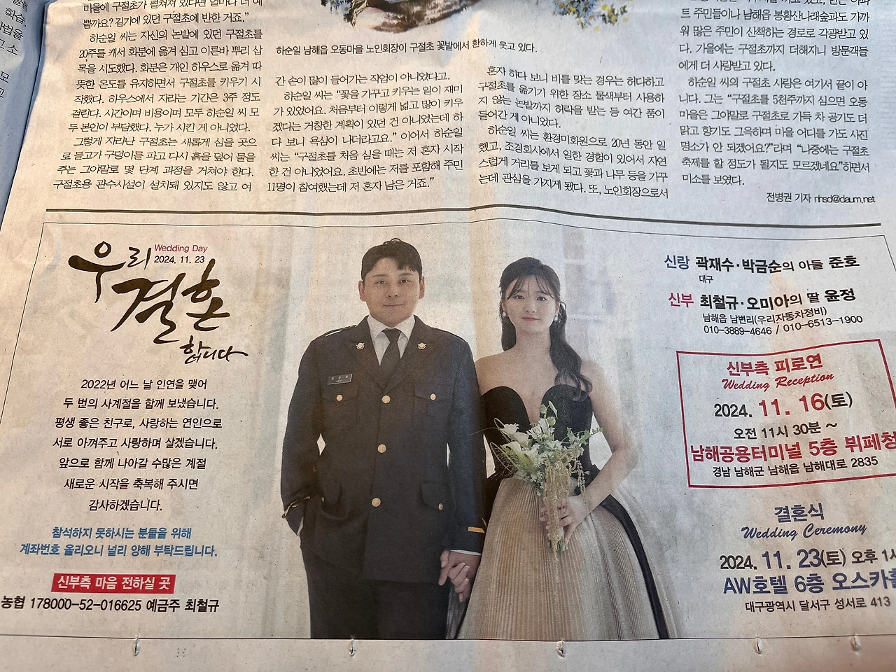 <남해시대> 최근호 지면에는 무려 8개 면에 결혼을 알리는 광고가 실렸다. 수상을 축하하는 친구들과 자녀의 광고도 있다.