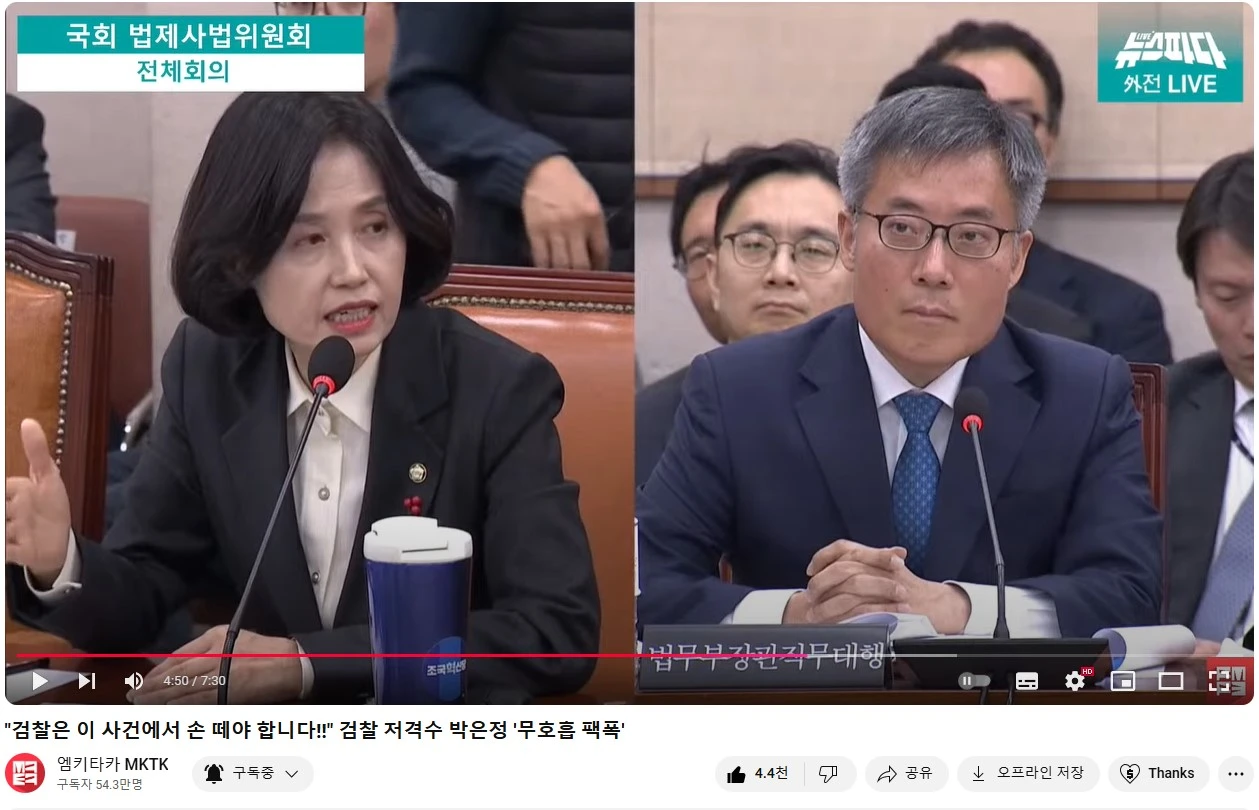 엠비씨경남 유튜브(엠키타카)가 완전 물 만났다. 국회방송 라이브를 이슈별로 잘라 발 빠르게 올리는데 조회수가 장난 아니다. 국회방송은 공공저작물이라 해당 영상을 조작 또는 왜곡하지만 않는다면 얼마든지 재사용이 가능하다.