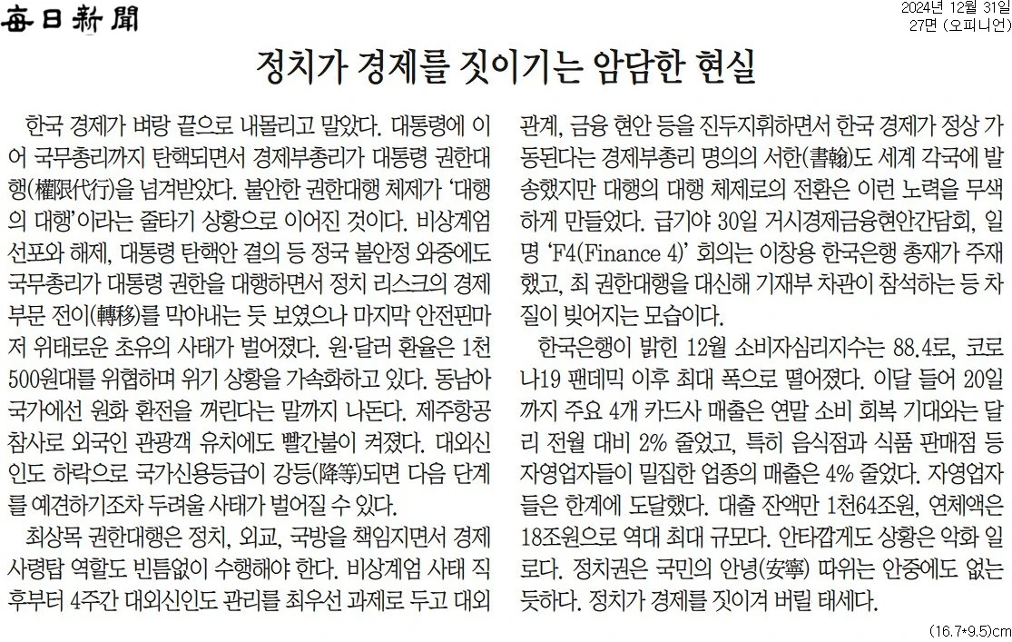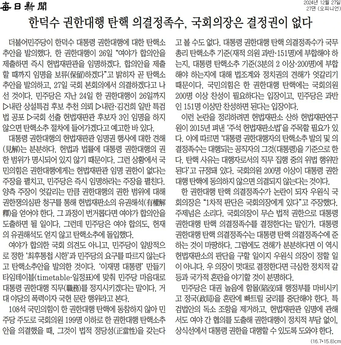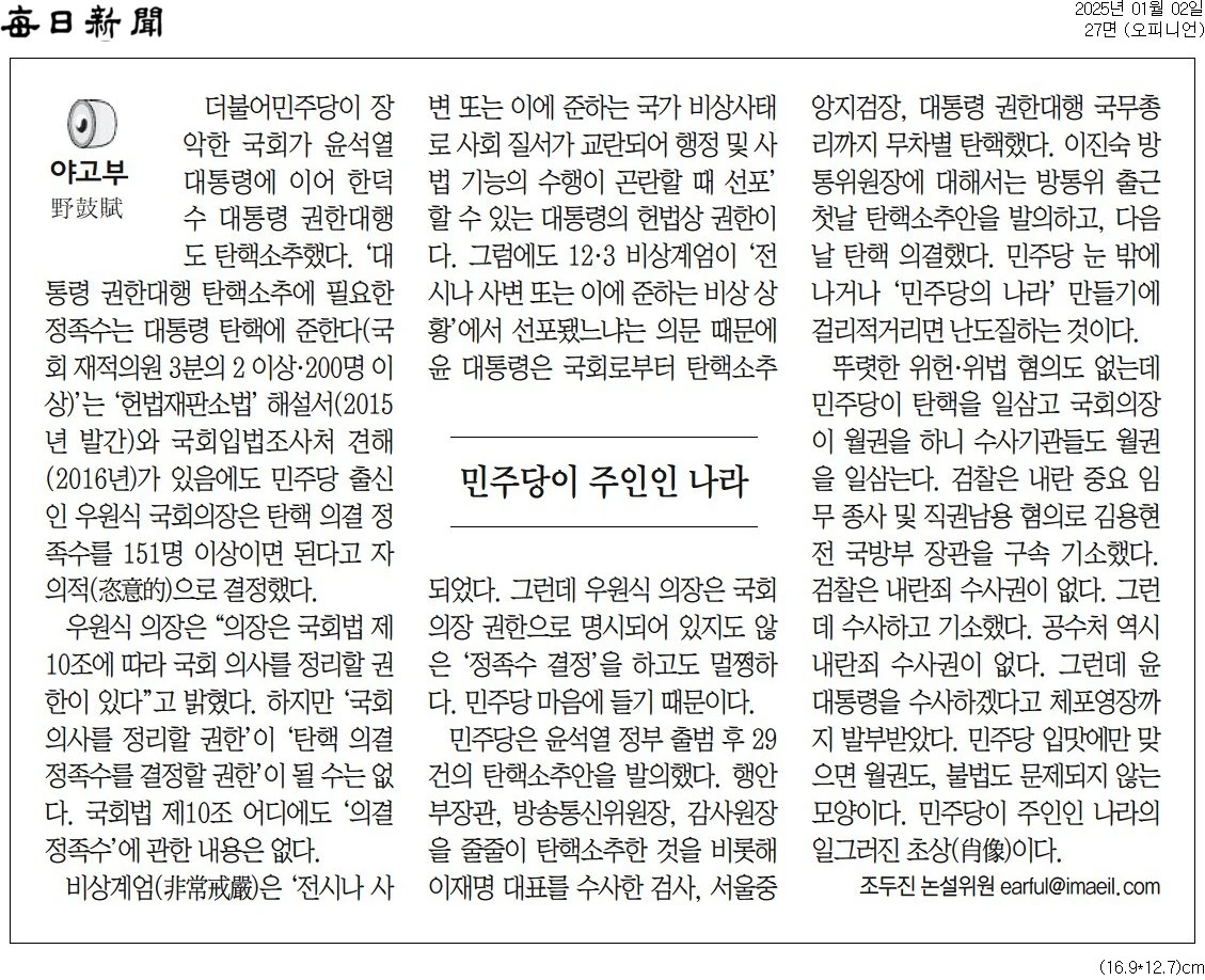 꿋꿋이 내란 수괴 옹호하는 사설