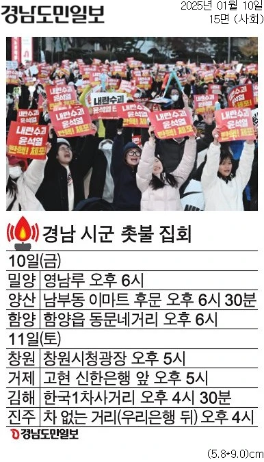 윤석열 체포와 탄핵을 촉구하는 목소리는 서울에만 있는 게 아니다. 경남에서도 각 시군에서 주말마다 수많은 사람들이 촛불과 응원봉을 들고 거리와 광장에 모이고 있다.