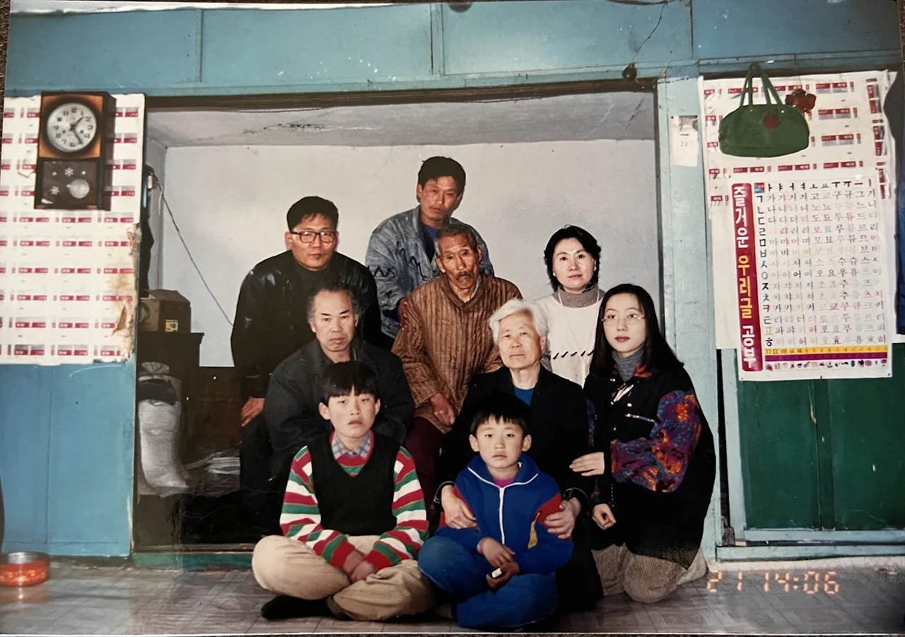 임신을 하지 못해 자식이 없었으나 부모 없는 아이를 하나 데려와 키웠다. 아들은 좀 모자라지만 성실하고, 손자가 둘 있는데 모두 똑똑하다고 자랑했다. 할머니는 방 안에 '즐거운 우리글 공부'라는 글자판을 걸어놓고 틈틈이 손자들에게 한국어를 가르친다고 한다.