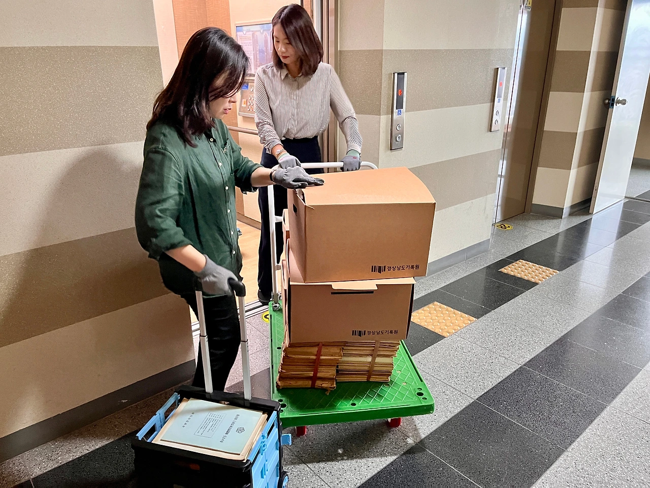 30년 넘게 취재 과정에서 수집한 민간기록물을 경상남도기록원에 기증했다. 기록원에서 가져온 박스에 담아보니 10개가 넘는 분량이었다.