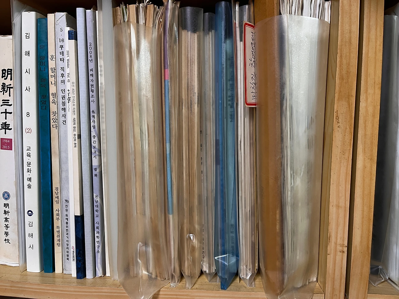 주로 경남지역 민주화운동, 일본군'위안부', 민간인학살 등 현대사(史) 자료들이어서 창원에 건립된 민주주의전당에 기증하려 했으나, 개관 후 꼬락서니를 보니 그럴 마음이 싹 가셨다. 그렇다고 서울에 있는 민주화운동기념관이나 기념사업회에 주는 건 '현지보존의 원칙'에 어긋나는 일.