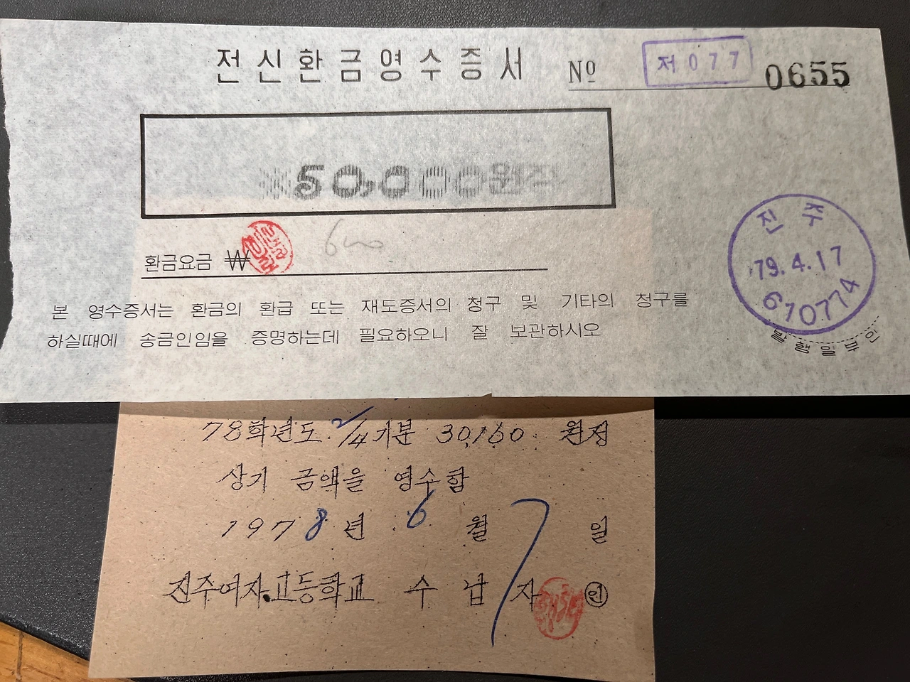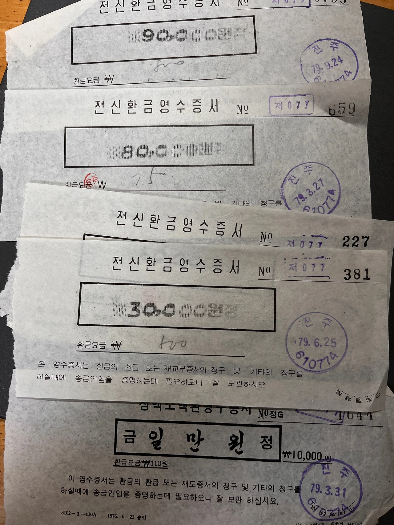 *그나저나 당시 전신환 수수료가 꽤 비쌌구나. 1만 원 환금료가 110원, 3만 원 환금료는 무려 500원이다.