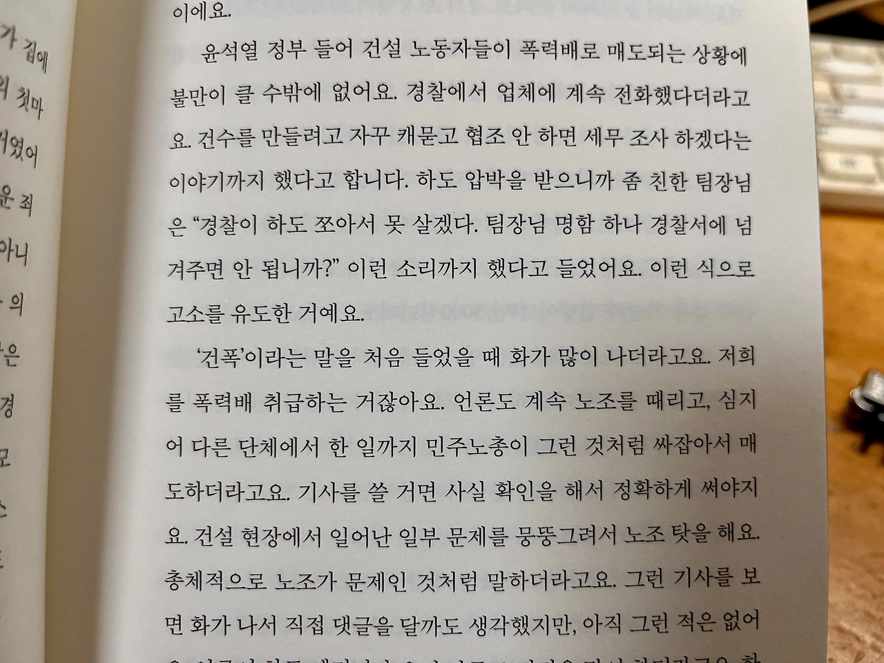 책을 읽던 중 한 여성 철근노동자의 고백에서 눈이 멈췄다.