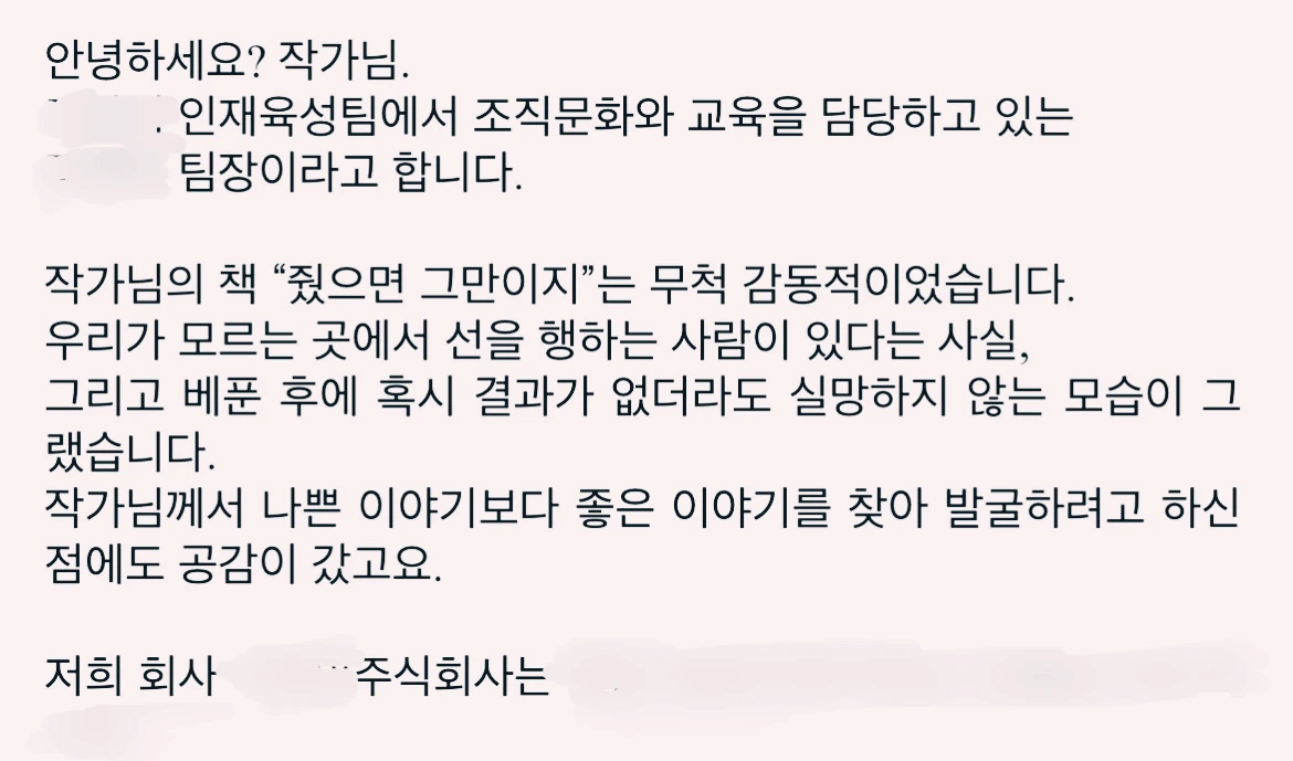 하지만 내가 잘할 수 있는 분야는 아니어서 정중히 사양했다. 대신 나보다 더 잘할 수 있는 작가를 추천해드리겠다고 답신을 보냈다.