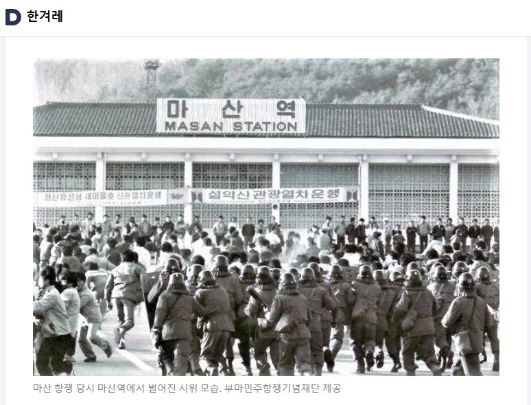 더 큰 문제는 이게 부마항쟁(1979) 당시의 사진이 아니라는 것이다. 1987년 2월 7일 고 박종철 추도회 및 살인경찰 규탄대회 사진이다.