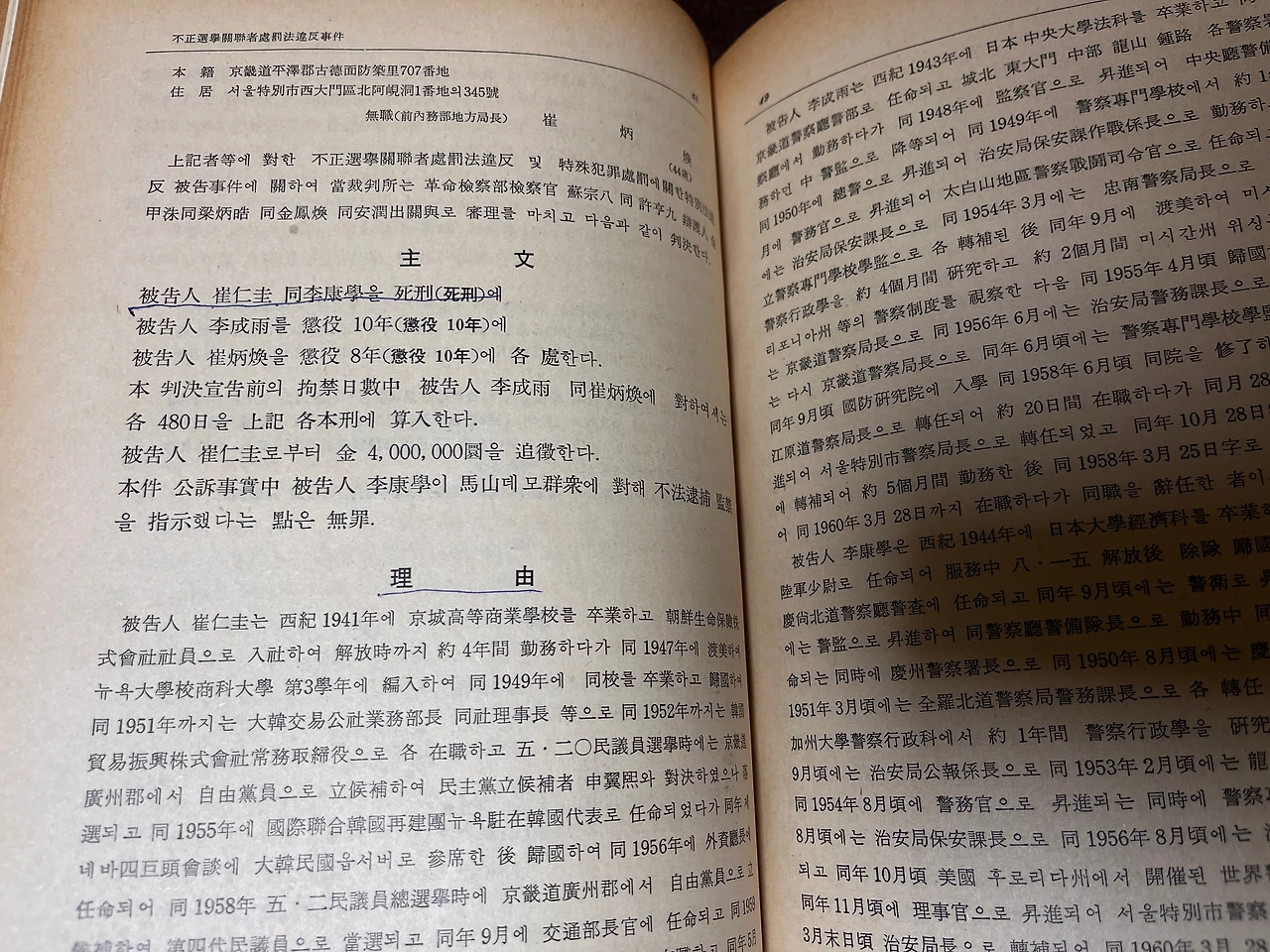 3.15부정선거 주범이나 부정축재 사건도 있지만, 당시 진보 정당과 통일운동단체, 민간인학살유족회 등 자신의 반대세력을, 급조한 법(특수범죄처벌에관한특별법)으로 사형, 무기징역 등 중형을 때린 판결문도 다 수록돼 있다.