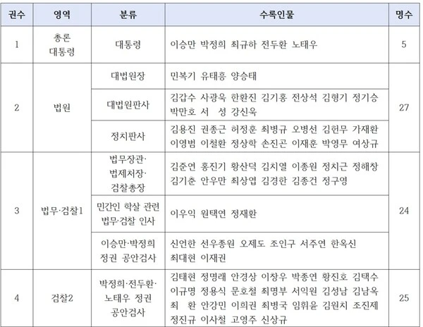 드디어 악질 반헌법행위자 312명 중 81명의 죄상을 엮은 <반헌법행위자열전> 1~4권이 우선 출간됩니다.