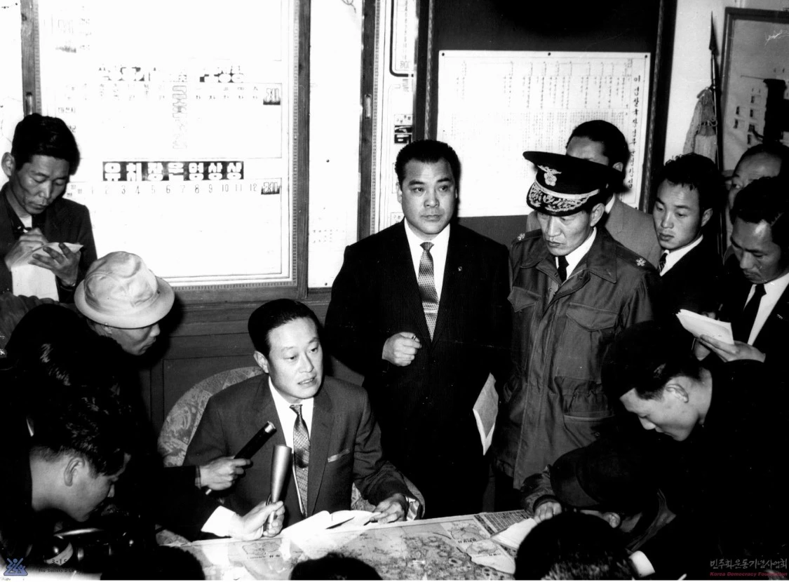 *사진은 마산 김주열 열사 시신 발견 후 4.11항쟁 관련 기자회견을 하고 있는 조인구(앉아있는 놈)