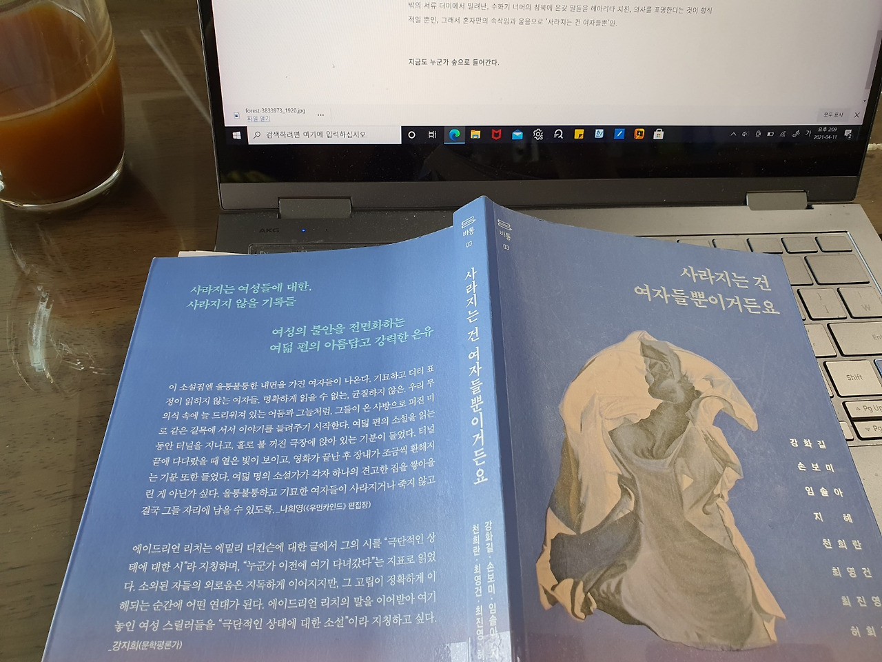 나도 모르게 섬뜩한 피해의식이 몰려온다. 아무 일도 일어나지 않았지만 이미 모든 일이 일어난 것만 같은 느낌. 왜냐하면 나도 여자라서. 사라지는 집단에 속해 있어서. 이 안에 도사리고 있는 사연을 전혀 모르지만, 왠지 이미 알 것만 같아서. 그래서 그만 같은 공포와 분노가 느껴져서. 어느새 이미 사라지고 있는 것만 같아서. 제목만으로도 내 마음이 광장에 서 있게 되는, '왜?'라고 외치게 되는, 막연하고도 얼마든지 구체적인 이 '사라짐'에 관한 팩트 체크를 요청하게 되는, 독자를 피해자로 편 먹고 두 팔 걷어붙이고 첫 장을 펼치게 하는, 이 요상한 제목을 좀 보시라. '사라지는 건 여자들뿐이거든요.'