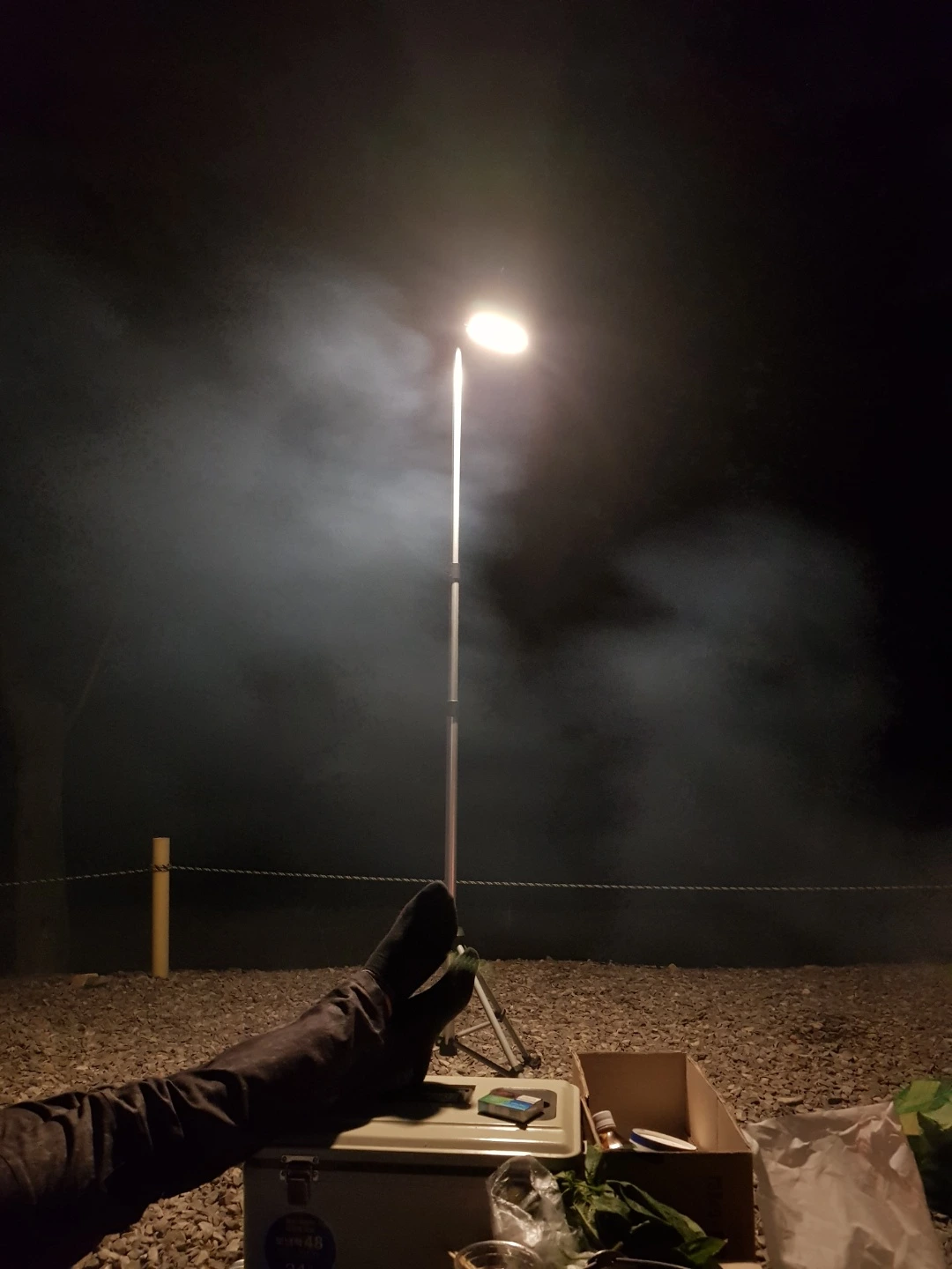 그렇게 친구의 변덕을 마무리하고 탑정호애 있는 밸리피싱이라는 캠핑장을(나름 오지 분위기 10프로) 예약하고, 족발 제일 큰 거, 제주산 뿔소라, 제주산 콩잎, 술 등등을 사서 얼른 텐트를 치고 의자를 깔고 노가리를 까고 있었는데