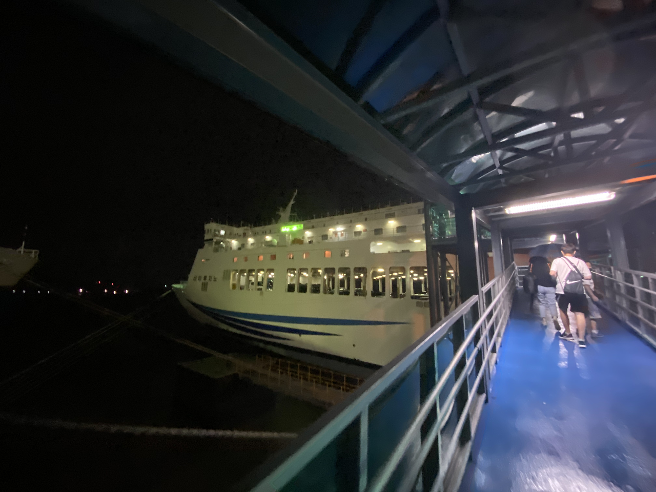 배에서 내리고 우리는 말없이? 음료수를 사고, 빙빙 거리는 배와 머리를 붙잡고 밥 먹으러...
