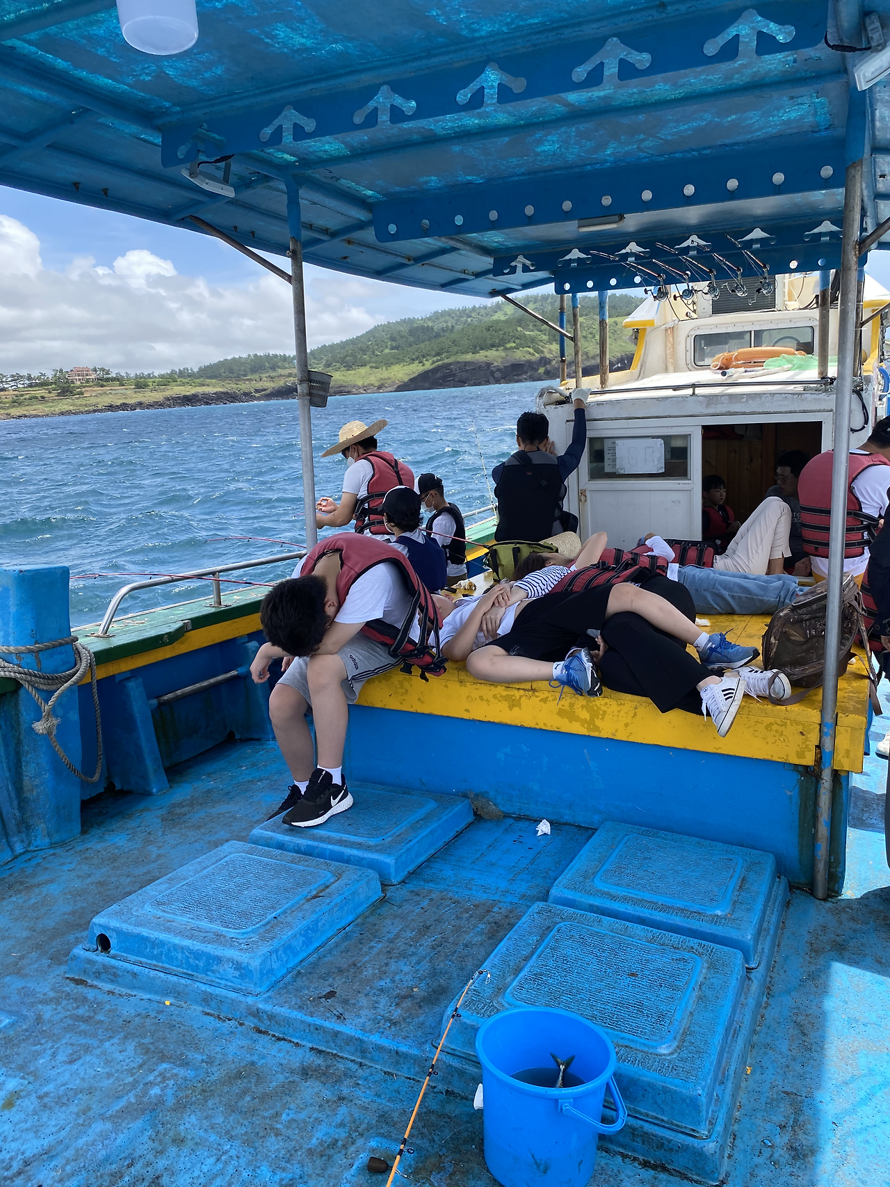 간단하게 절차를 밟고 선장님을 따라 파도의 출렁거림을 재미 삼아 닻을 내리고 낚싯대를 던지기 시작했다.